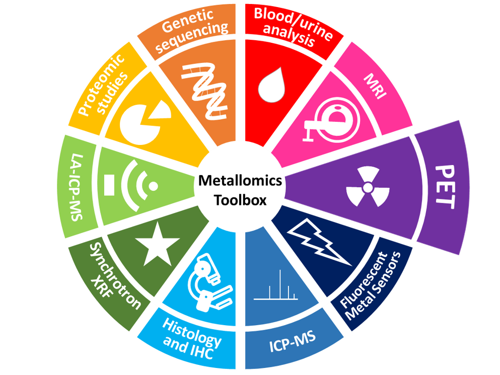 Metallomics, the study of metals in biological systems, stands at the forefront of completely transforming our understanding of health, disease, and the environment, offering solutions that transcend disciplines and hold the key to new horizons of break-through research. Until recently, Metallomics relied largely on destructive analytical techniques limited to a single spatiotemporal location and microscopic scale without a clear clinically translational path. We have already established a research niche that addresses this critical unmet need in the field; the non-invasive study of the acute dynamics of metal trafficking in vivo across the whole-body in health and disease. I have identified the potential of this approach, termed PET Metallomics, and have led international collaborations to study metal trafficking using in vivo murine models of breast cancer, prostate cancer, diabetes, and manganism.